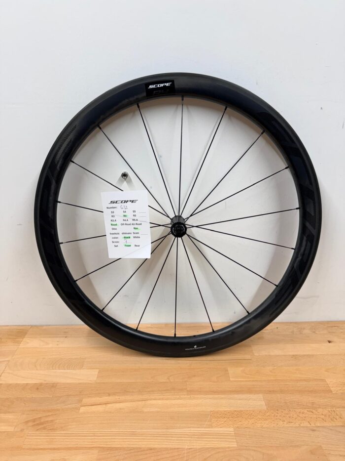 Solid wheels, well inspected. The R4 front wheel performs excellently. Small scratch on the hub but doesn’t affect performance at all.